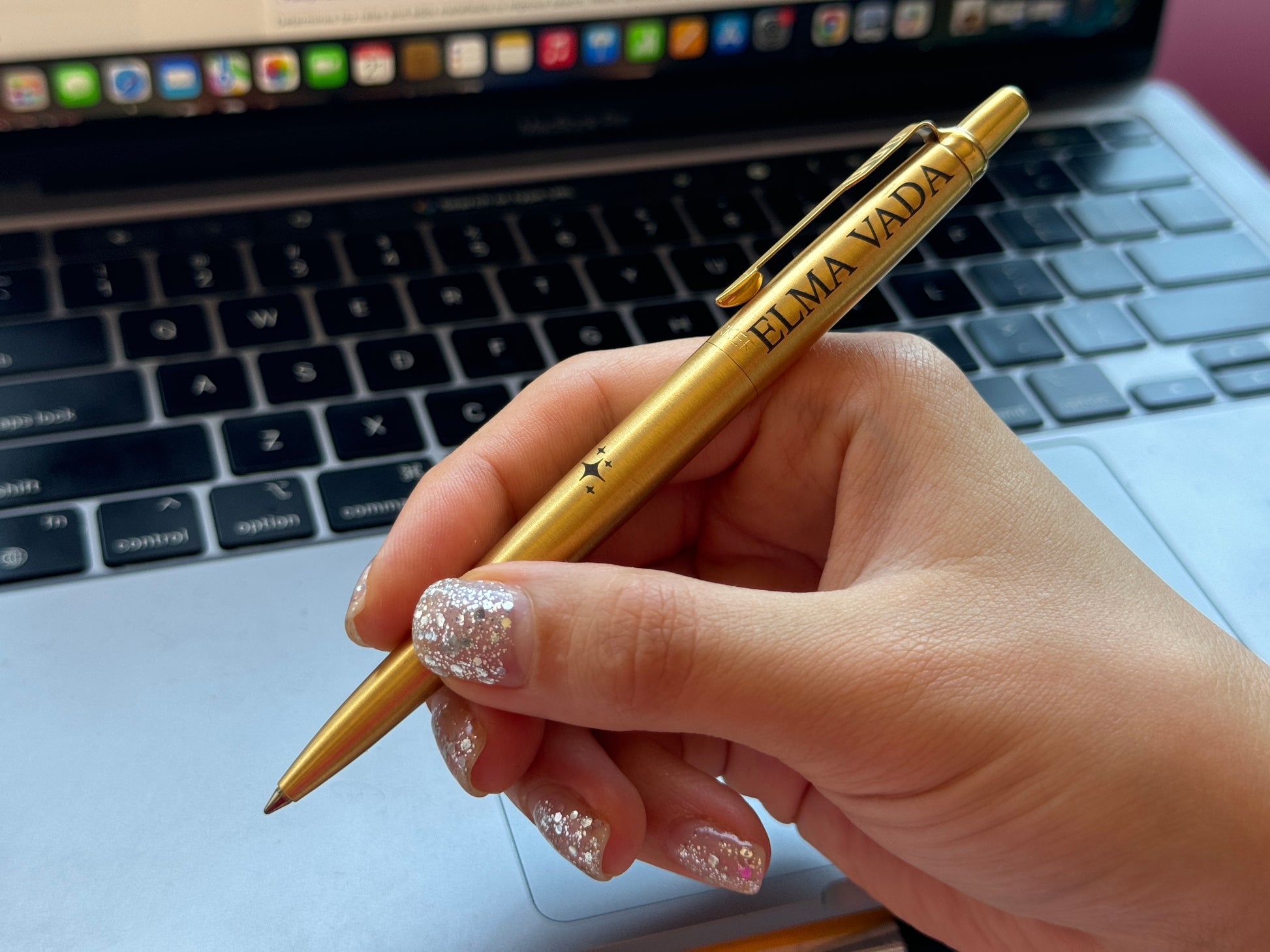 The Elma Vada Studio team is here to help! Get a FREE sample to try out the pen and see how your engraving looks in person.